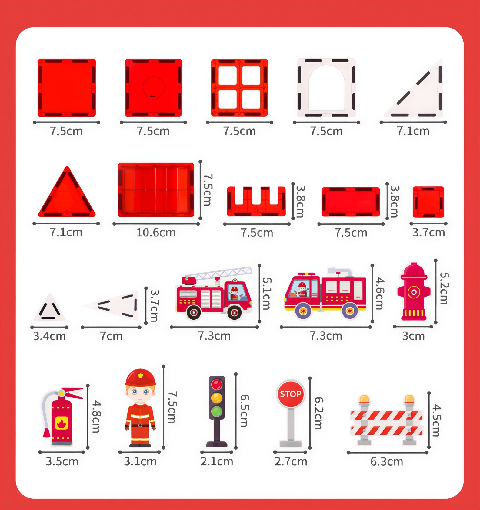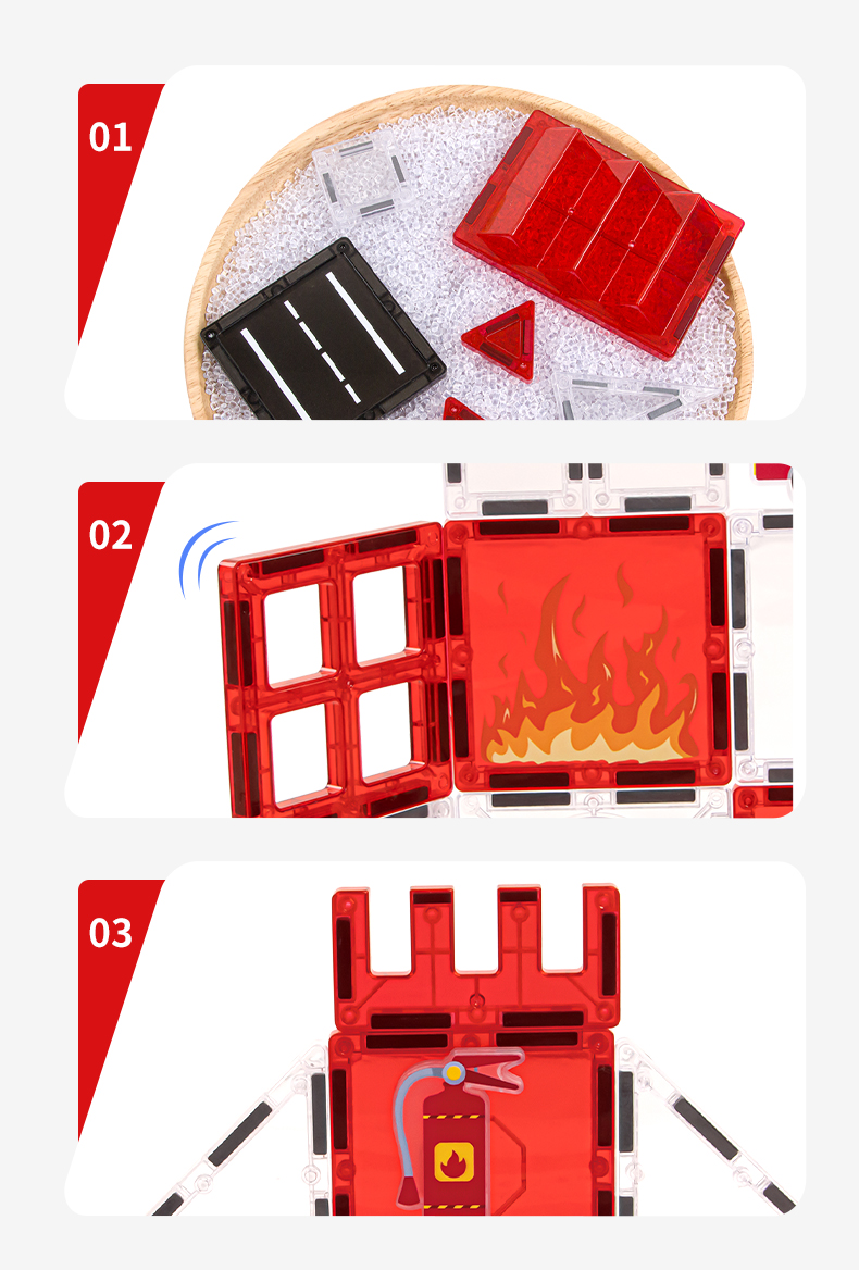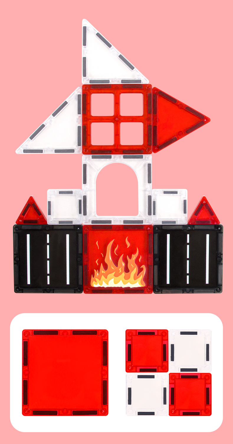 Droša, kvalitatīva un izturīga konstrukcija – katrs elements ir izgatavots no augstas kvalitātes, netoksiska un izturīga plastmasas materiāla. Noapaļotās malas un droši noslēgtie magnēti garantē drošību. Magnētiem ir ideāls stiprums – tie stingri notur būves, bet ļauj viegli savienot un izjaukt. Protams, ar drošības sertifikāciju.