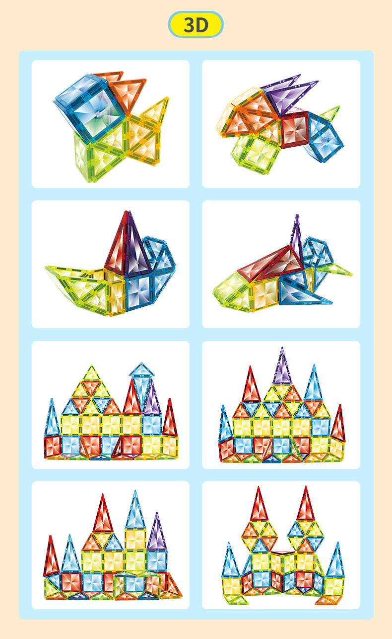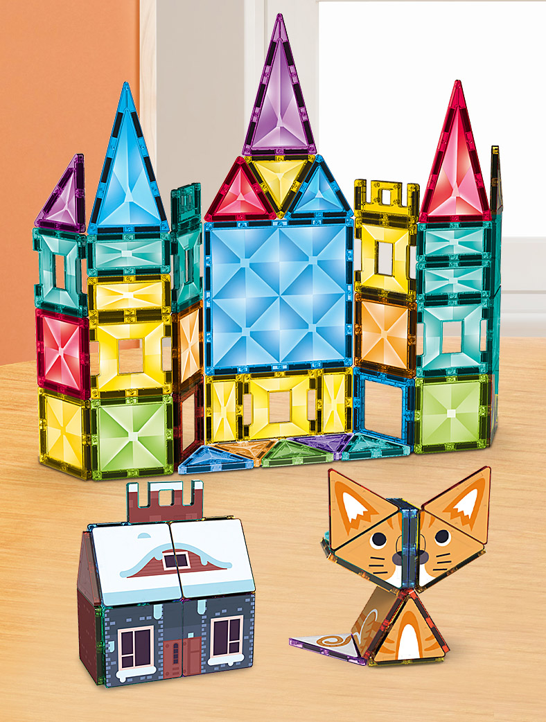 Elementus ir viegli savienot ar spēcīgiem magnētiem, tāpēc bērni var veidot dažādas formas, mājiņas, torņus, pilis vai pat oriģinālus mākslas darbus. Magnētiskie kluči apvieno izklaidi, radošumu un estētiku, attīstot smalko motoriku, iztēli un skaistuma izjūtu.