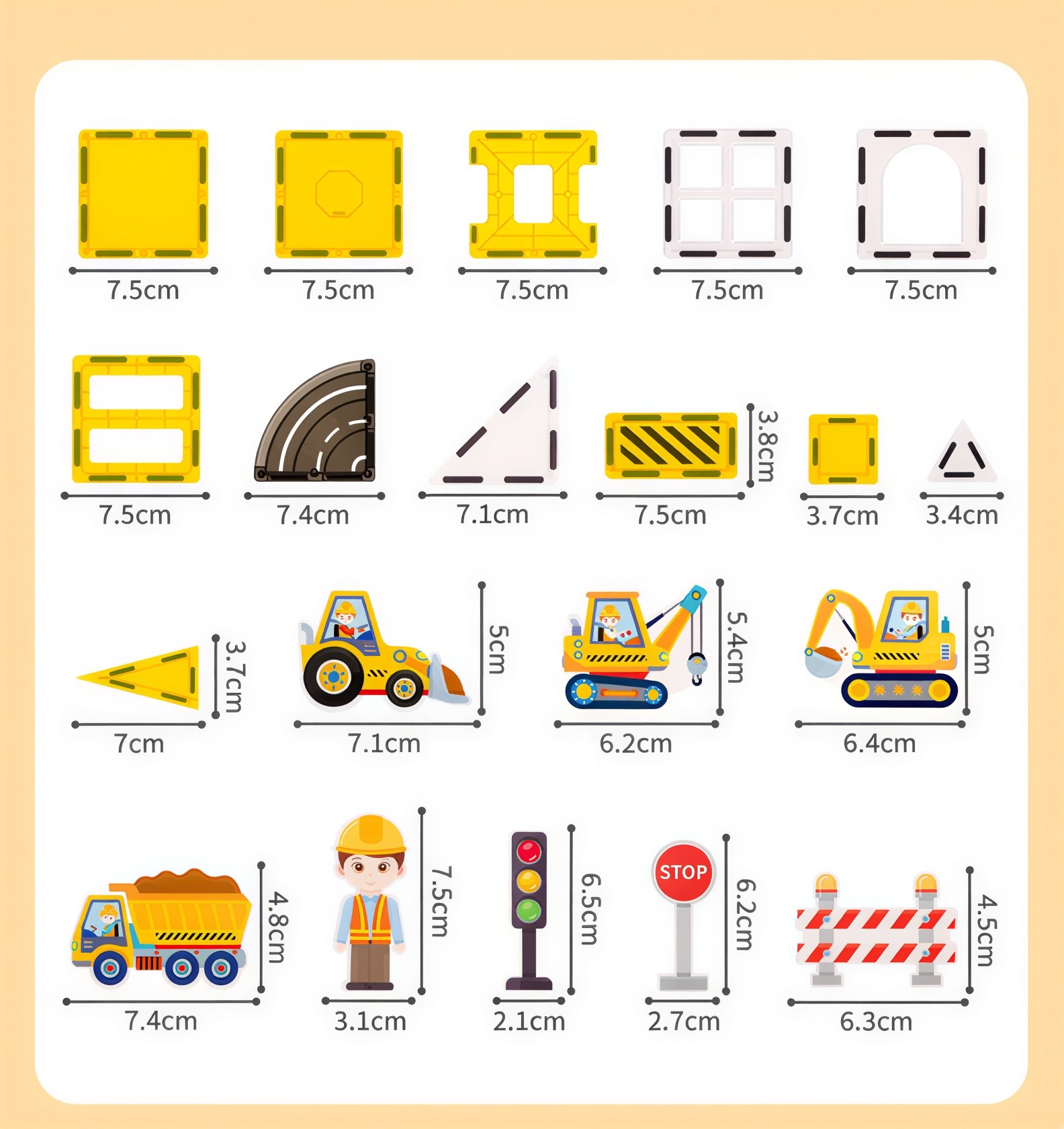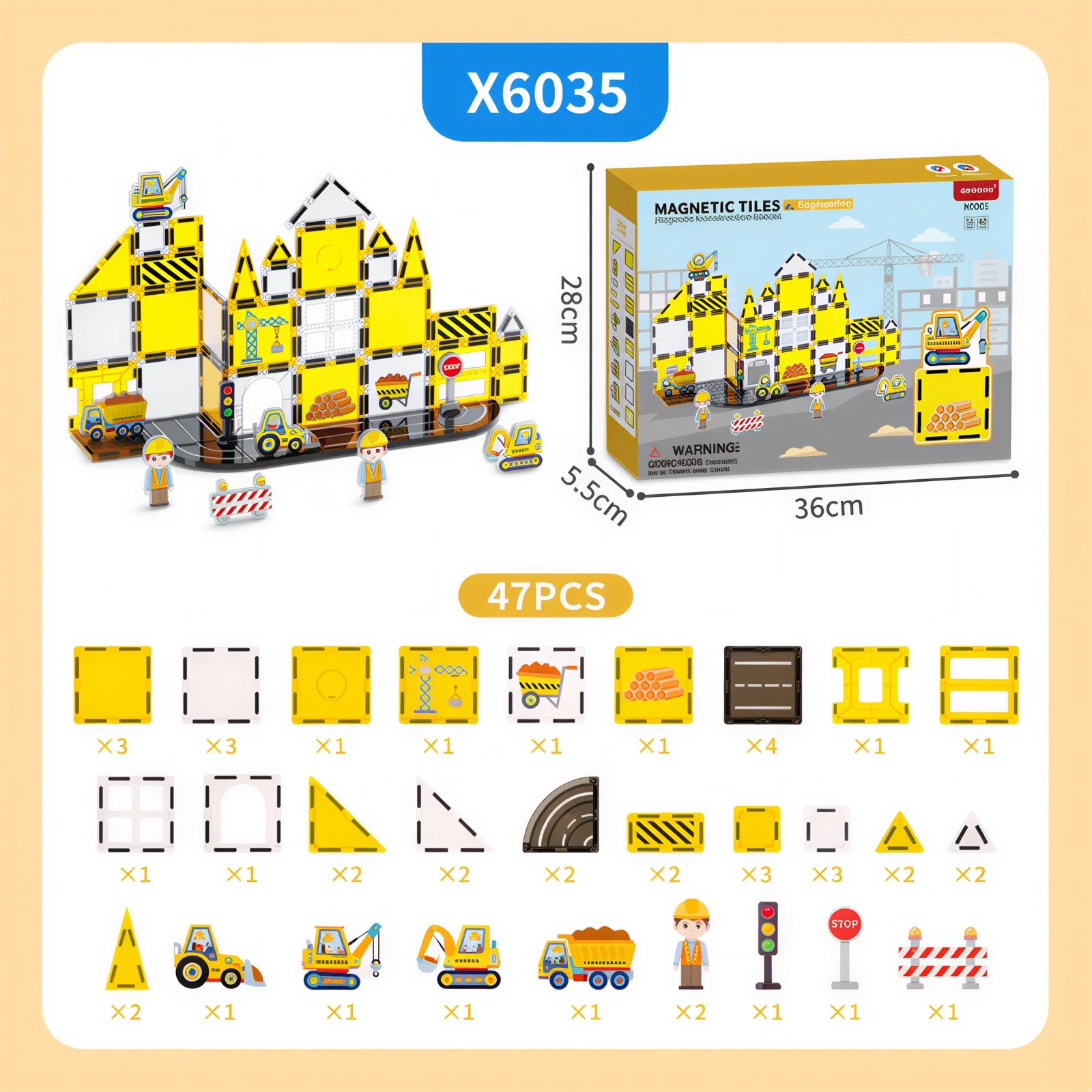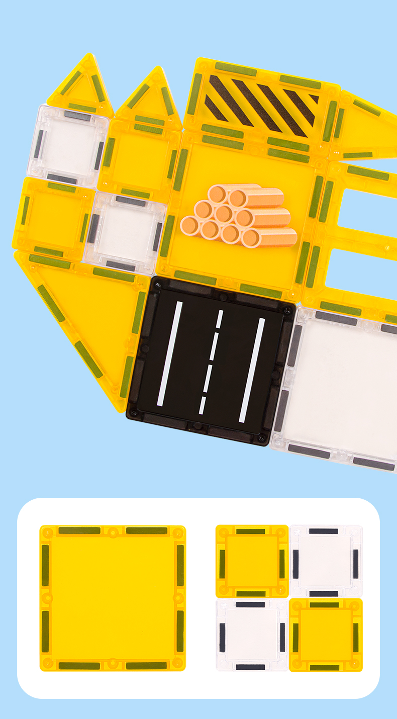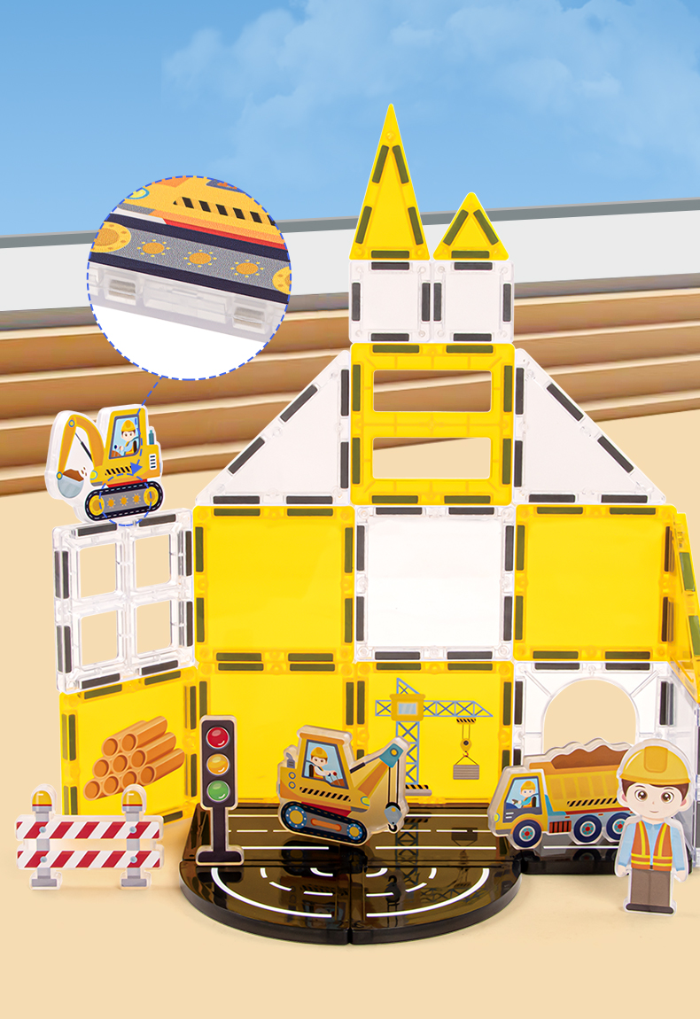 Droša, kvalitatīva un izturīga konstrukcija – katrs elements ir izgatavots no augstas kvalitātes, netoksiska un izturīga plastmasas materiāla. Noapaļotās malas un droši noslēgtie magnēti garantē drošību. Magnētiem ir ideāls stiprums – tie stingri notur būves, bet ļauj viegli savienot un izjaukt. Protams, ar drošības sertifikāciju.