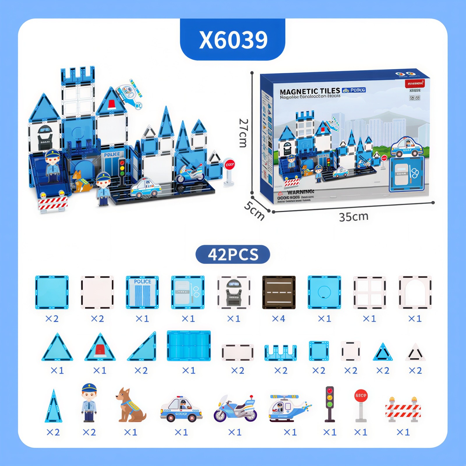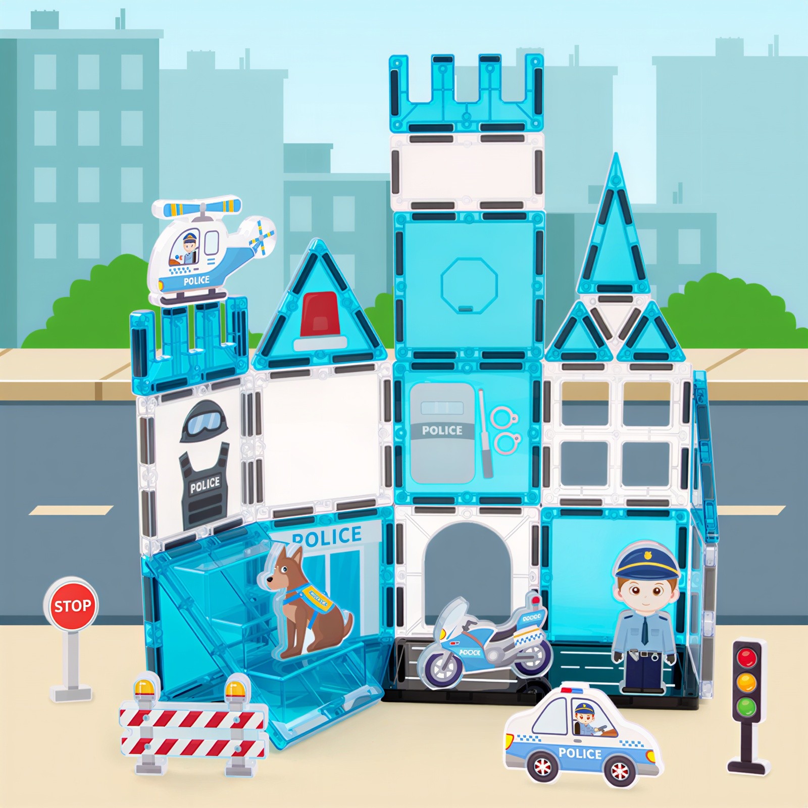 Droša, kvalitatīva un izturīga konstrukcija – katrs elements ir izgatavots no augstas kvalitātes, netoksiska un izturīga plastmasas materiāla. Noapaļotās malas un droši noslēgtie magnēti garantē drošību. Magnētiem ir ideāls stiprums – tie stingri notur būves, bet ļauj viegli savienot un izjaukt. Protams, ar drošības sertifikāciju.