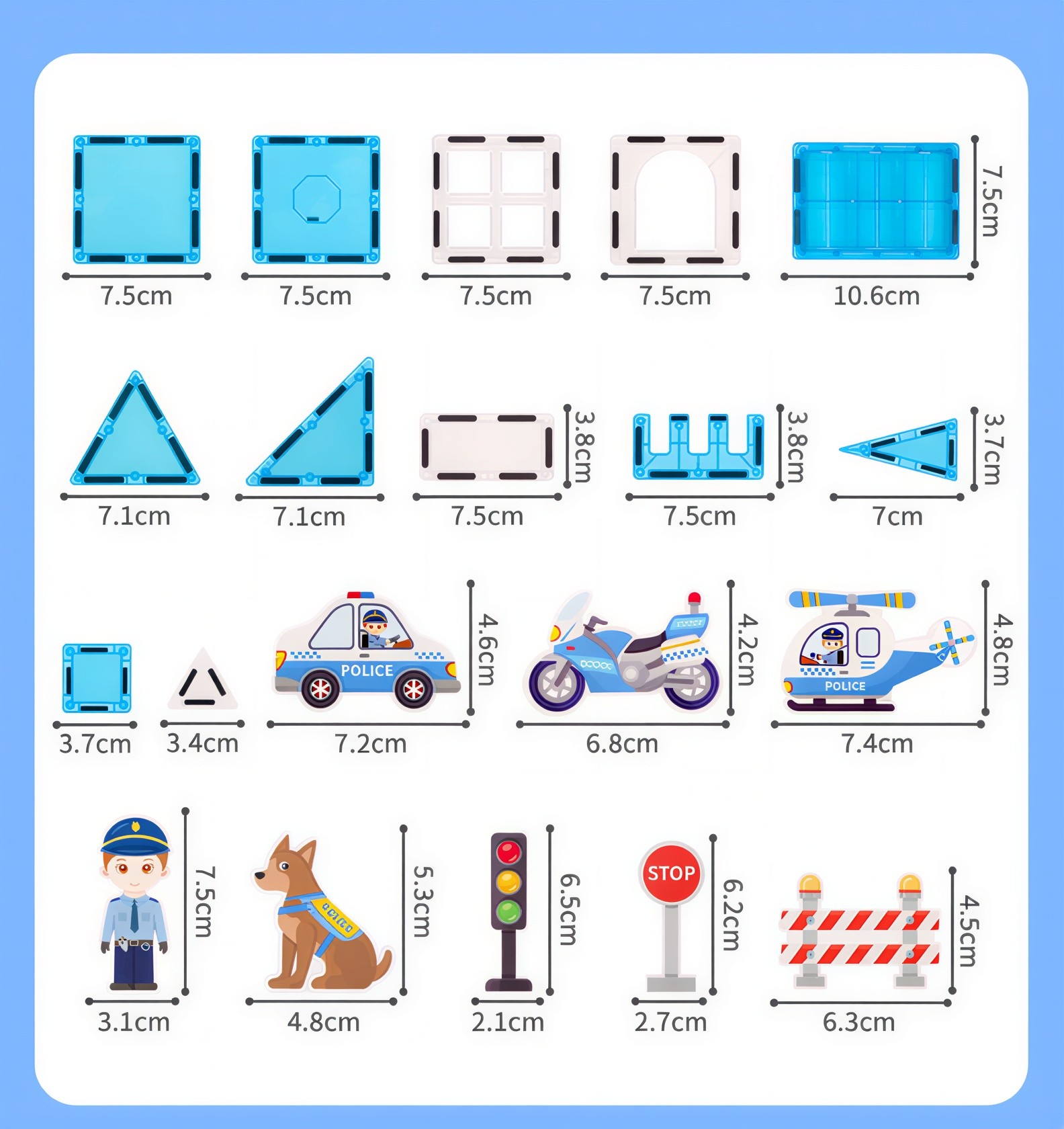 Šī LELINO magnētiskā rotaļlieta (7,5 × 7,5 cm) ir pilnībā saderīga ar visām LELINO sērijām vienā izmērā, kā arī ar lielāko daļu citu zīmolu Magnētiskie kluči ar tādu pašu 7,5 × 7,5 cm izmēru. For example, from brands like Magna Tiles, Connetix, PicassoTiles, PlayMags, Colormag and others.