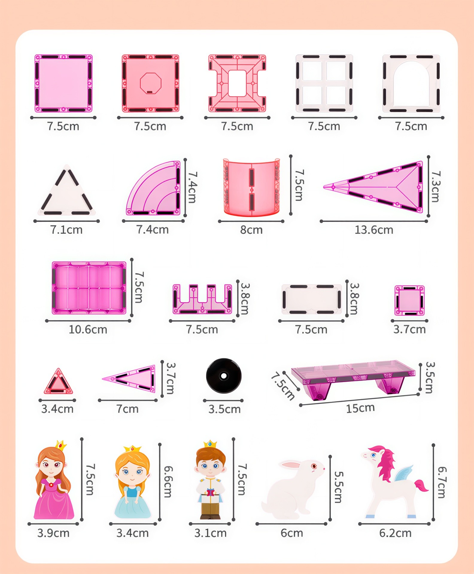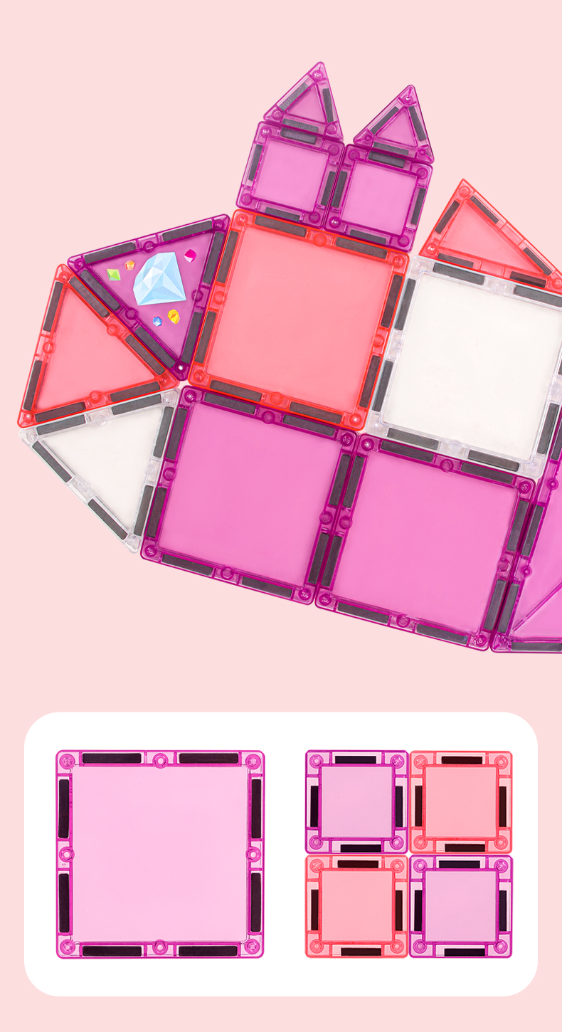 Elementus ir viegli savienot ar spēcīgiem magnētiem, tāpēc bērni var veidot dažādas formas, mājiņas, torņus, pilis vai pat oriģinālus mākslas darbus. Magnētiskie kluči apvieno izklaidi, radošumu un estētiku, attīstot smalko motoriku, iztēli un skaistuma izjūtu.